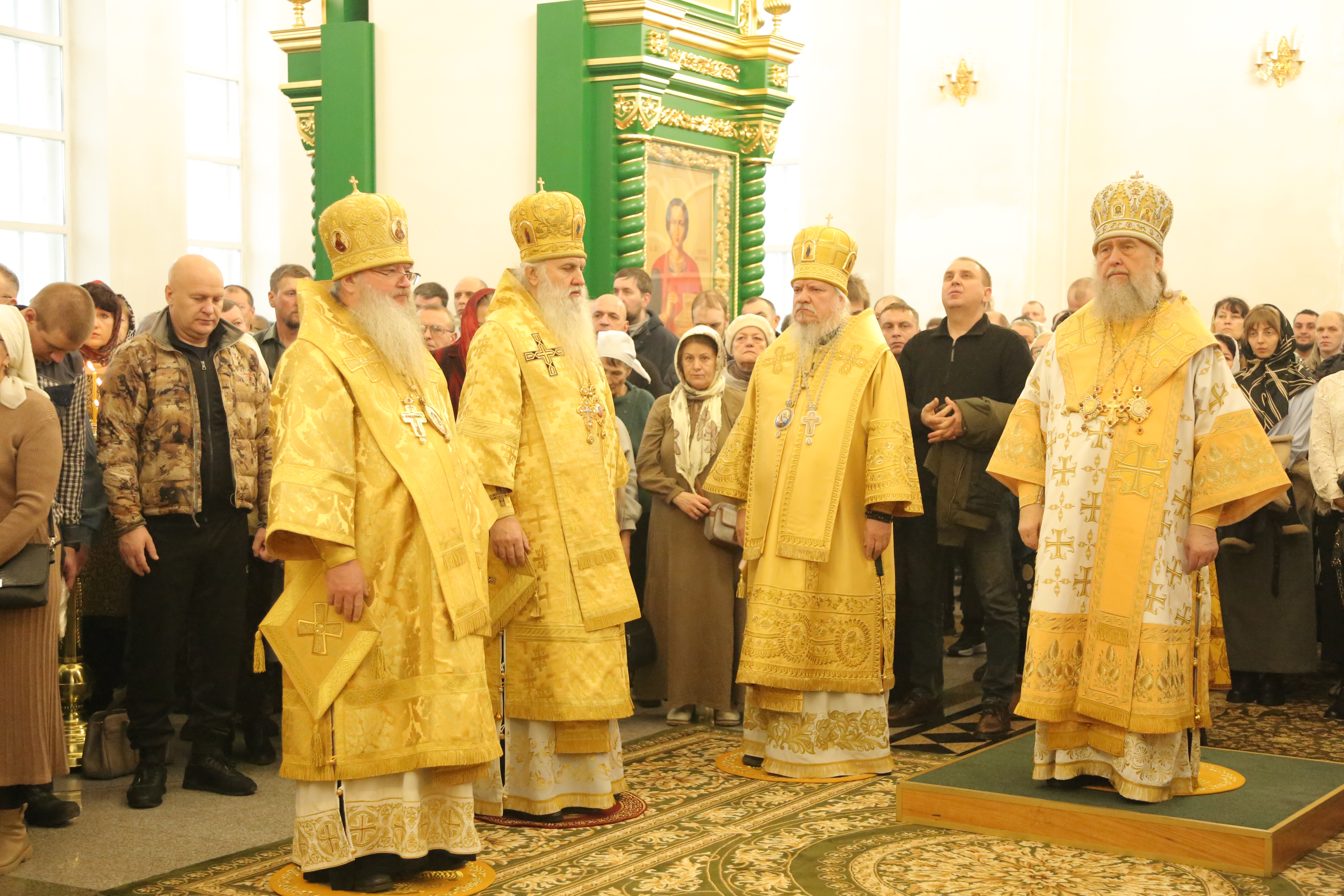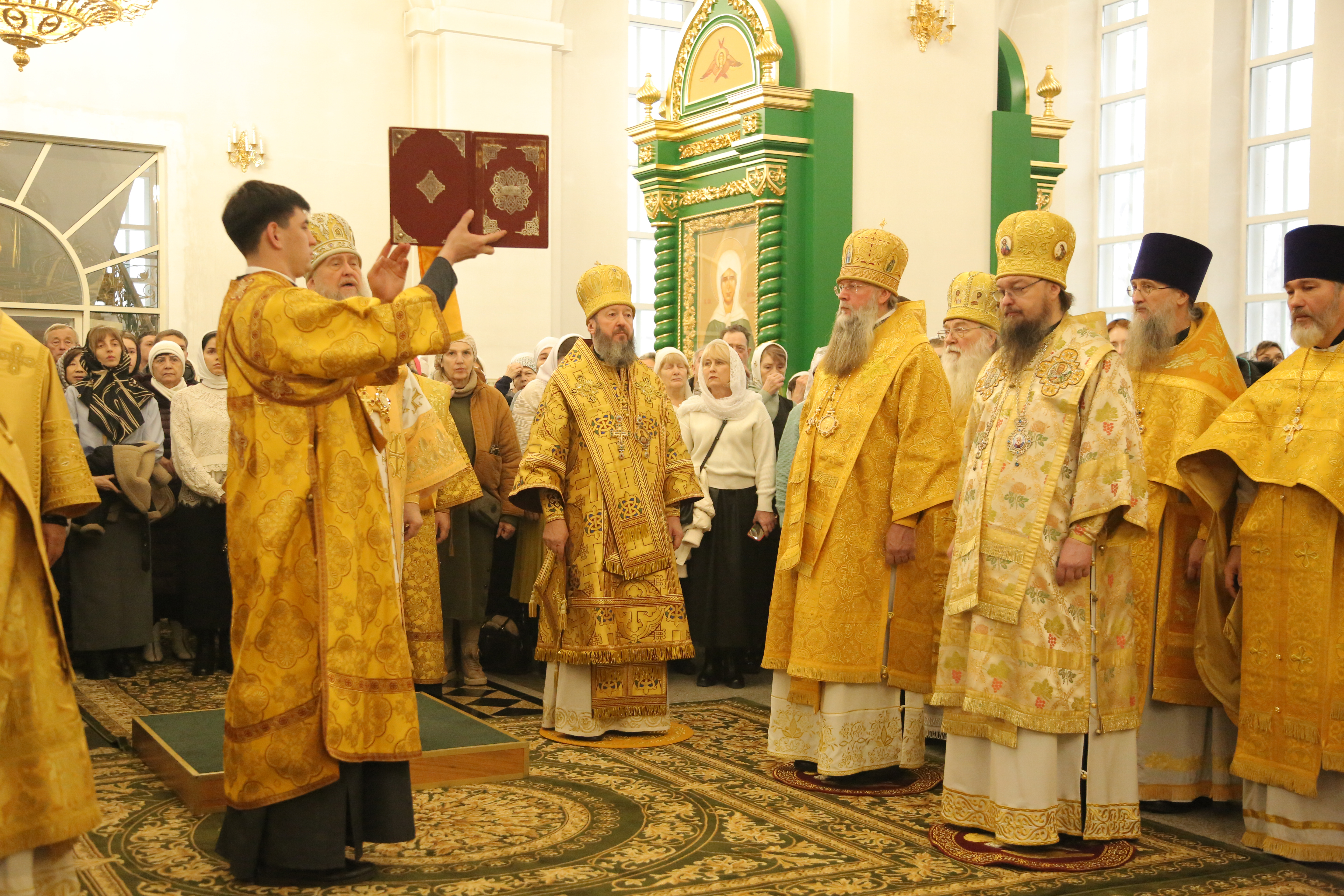 Его Высокопреосвященству сослужили: архиепископ Карагандинский и Шахтинский Севастиан, архиепископ Усть-Каменогорский и Семипалатинский Амфилохий, архиепископ Кокшетауский и Акмолинский Варсонофий, викарий Астанайской епархии епископ Талдыкорганский Клавдиан, епископ Чимкентский и Туркестанский Хрисанф, епископ Уральский и Атырауский Вианор.