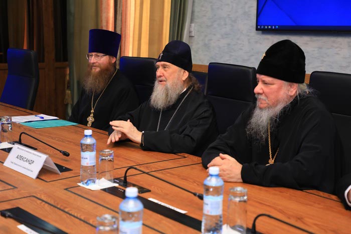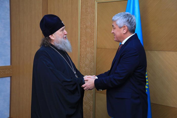 Митрополит Александр рассказал руководителю исполнительной власти области о жизни Казахстанского Митрополичьего округа, главным событием которой стал визит в Астану Святейшего Патриарха Московского и всея Руси Кирилла. Архипастырь сообщил собеседнику, что помимо работы в VIII Съезде лидеров мировых и традиционных религий Предстоятель Русской Православной Церкви освятил новопостроенный Сергиевский храм и благословил продолжение создания духовно-просветительского центра в честь Всех святых в земле Казахстанской просиявших; в Успенском кафедральном соборе при стечении огромного числа верующих совершил молебен новомученикам и исповедникам Церкви Христовой.