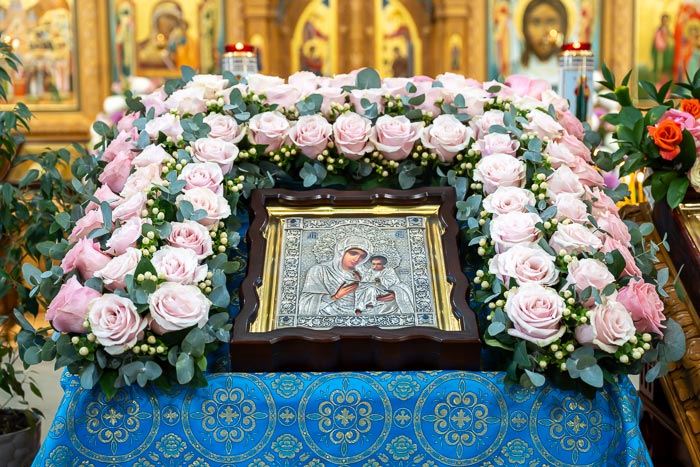 Литургия завершилась славлением Пресвятой Богородице перед ковчегом с Ее честным Поясом и Иверским образом Царицы Небесной, а также литией у гробницы митрополита Иосифа (Чернова), после чего митрополит Александр поздравил епископов, матушек игумений, духовенство и прихожан с престольным праздником и обратился к верующим со словами архипастырской проповеди.
