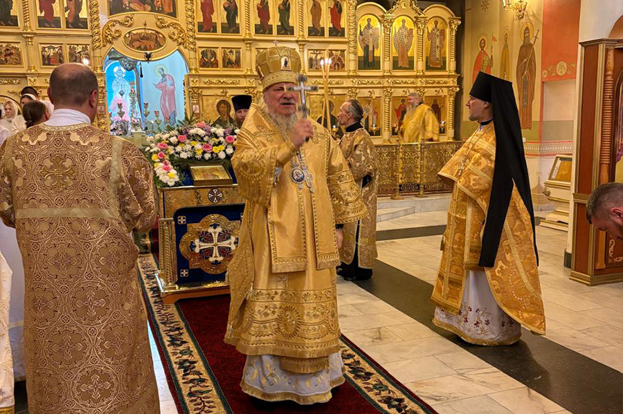 По заамвонной молитве состоялось славление перед иконой Апостола Андрея Первозванного, после чего был совершен крестный ход, на котором владыка Севастиан окропил верующих святой водой. Далее воспитанники воскресной школы поздравили архиерея с престольным праздником. В завершение богослужения архиепископ Севастиан произнес проповедь и преподал всем Божие благословение.
