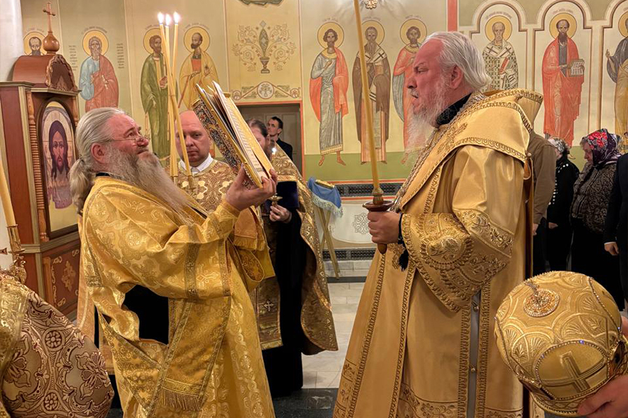 В воскресенье, 14 декабря, правящий архиерей совершил Божественную литургию в храме Святителя Николая города Сатпаев в сослужении вышеназванных священнослужителей.