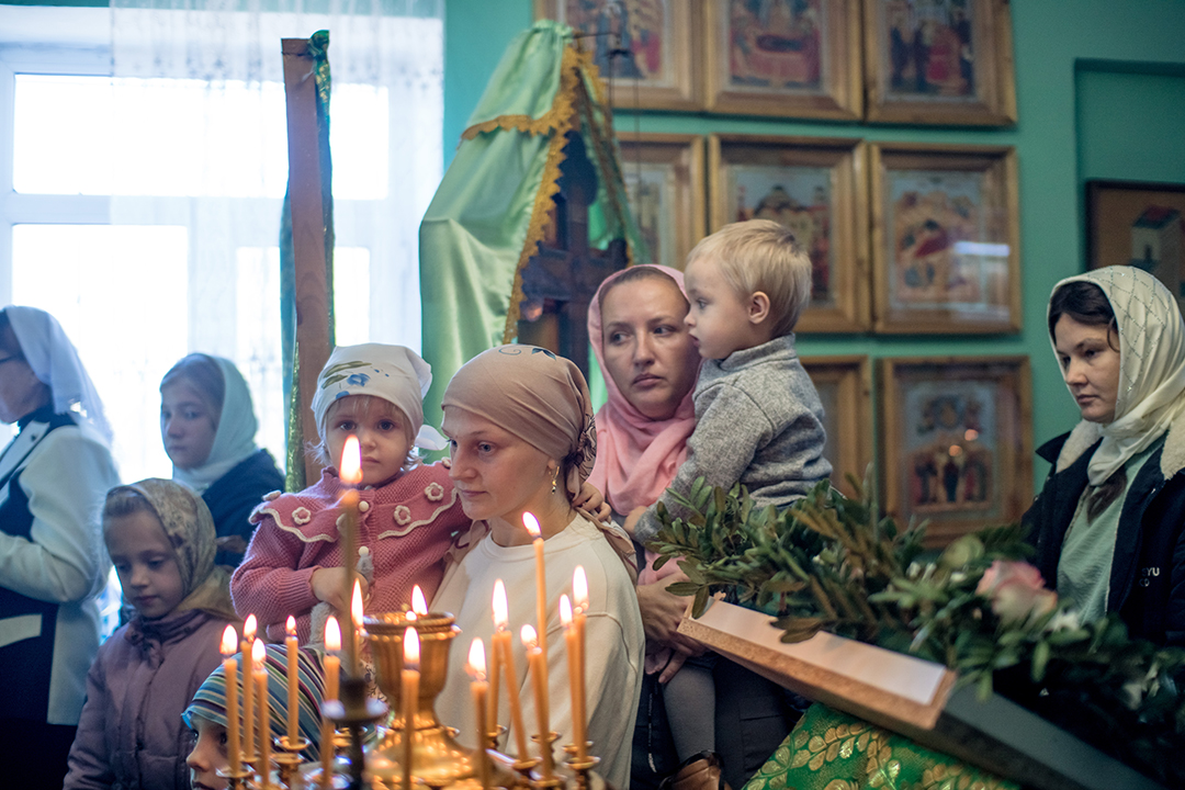 Божественная литургия в храме Преподобного Сергия Радонежского поселка Нура.