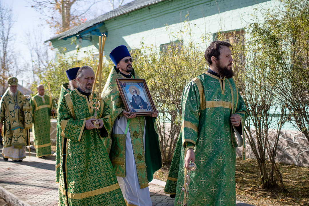 После заамвонной молитвы архиепископ Севастиан обратился к прихожанам со словом проповеди, после чего состоялось славление перед иконой Преподобного Сергия Радонежского. Далее был совершен крестный ход, на котором владыка окропил верующих святой водой. В завершение богослужения правящий архиерей еще раз поздравил всех с престольным праздником и преподал Божие благословение.