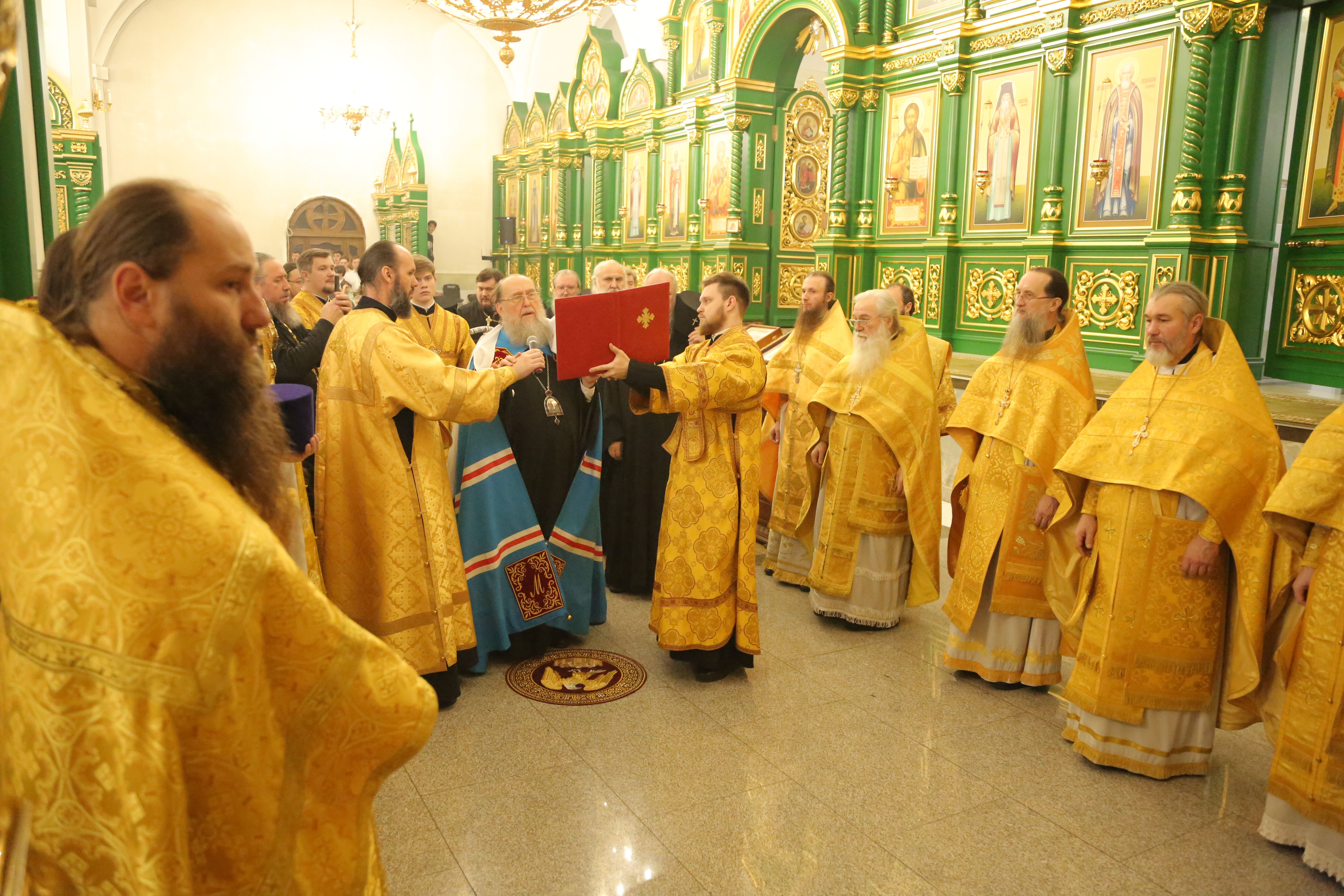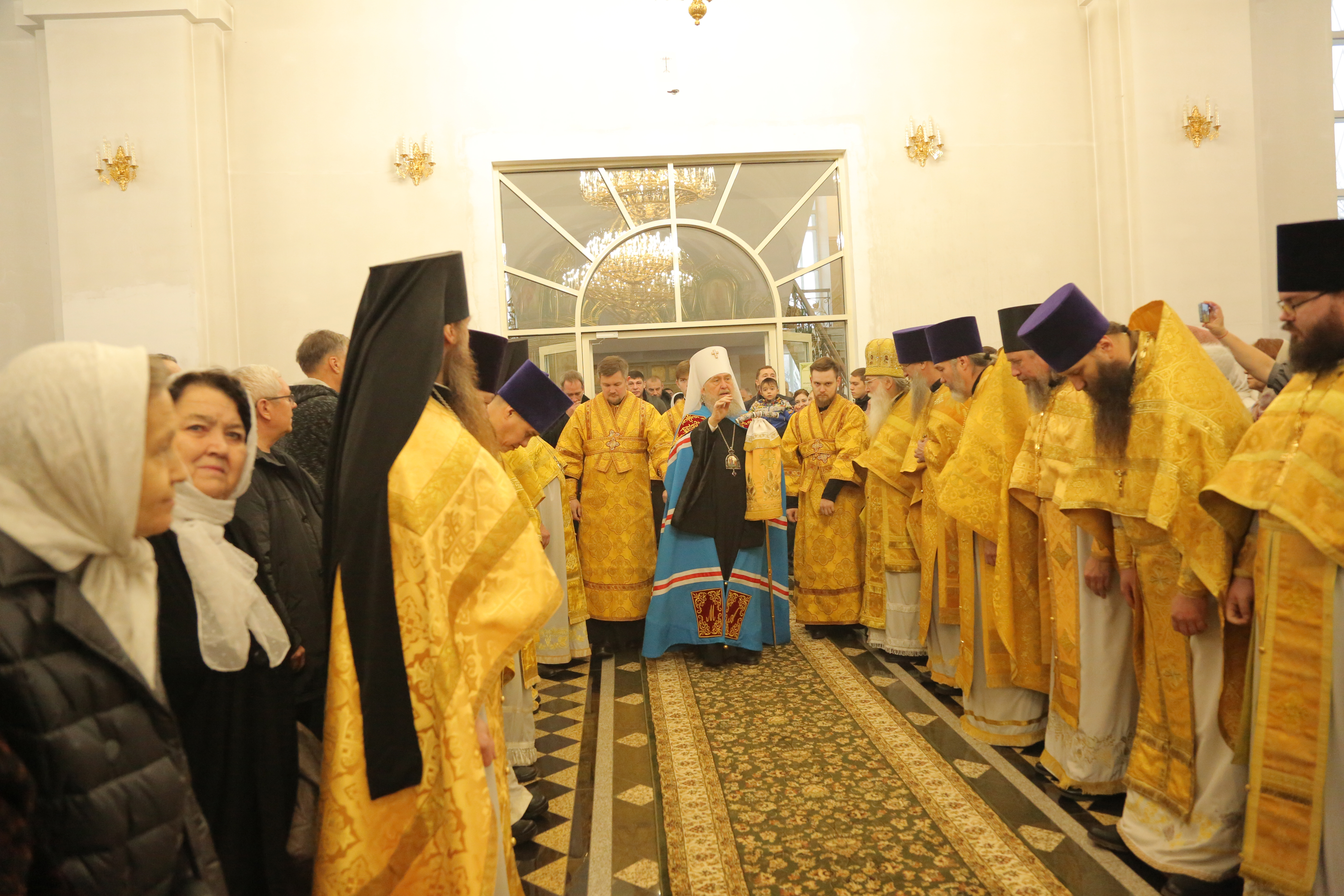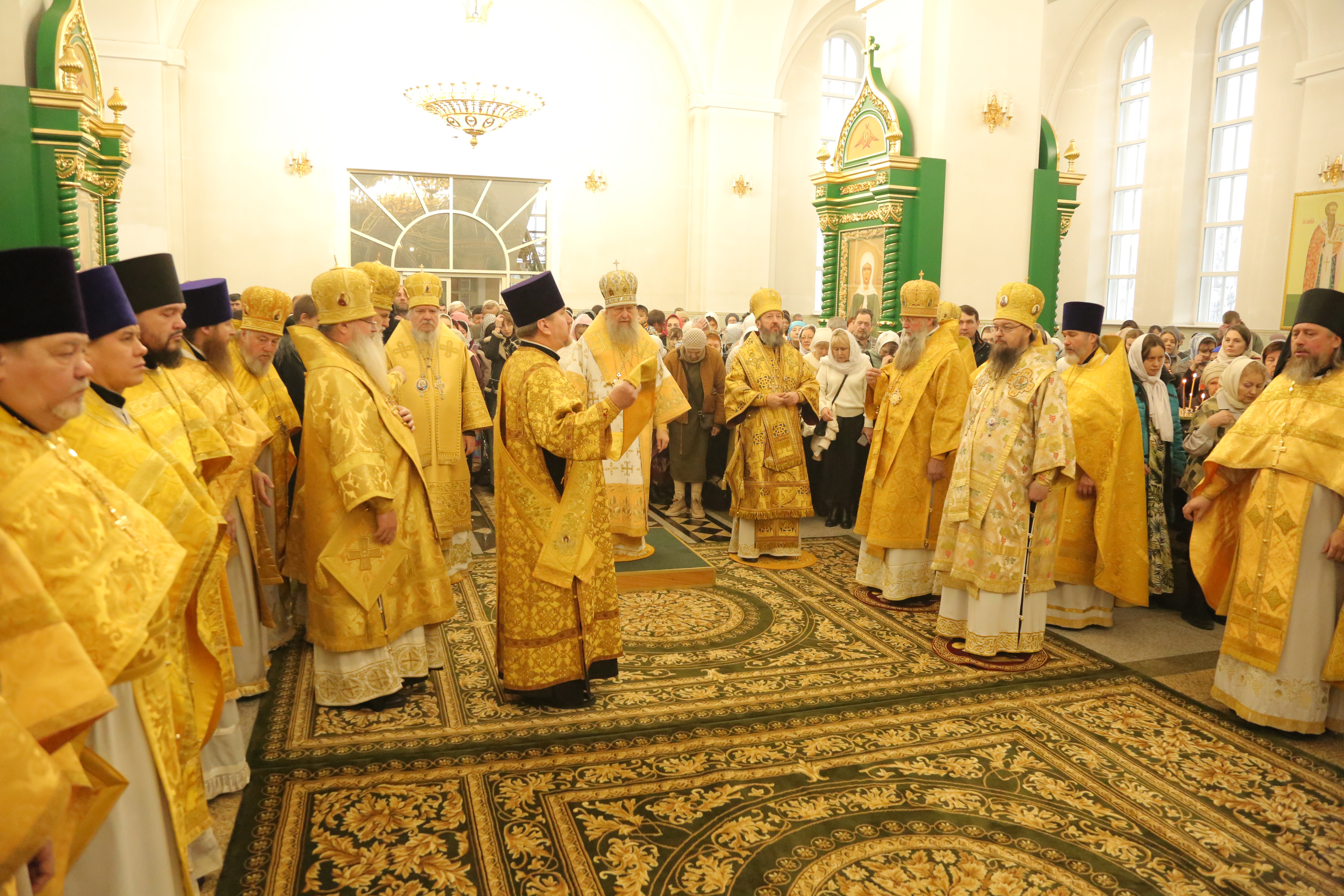 Его Высокопреосвященству сослужили: архиепископ Карагандинский и Шахтинский Севастиан, архиепископ Усть-Каменогорский и Семипалатинский Амфилохий, архиепископ Кокшетауский и Акмолинский Варсонофий, викарий Астанайской епархии епископ Талдыкорганский Клавдиан, епископ Чимкентский и Туркестанский Хрисанф, епископ Уральский и Атырауский Вианор.
