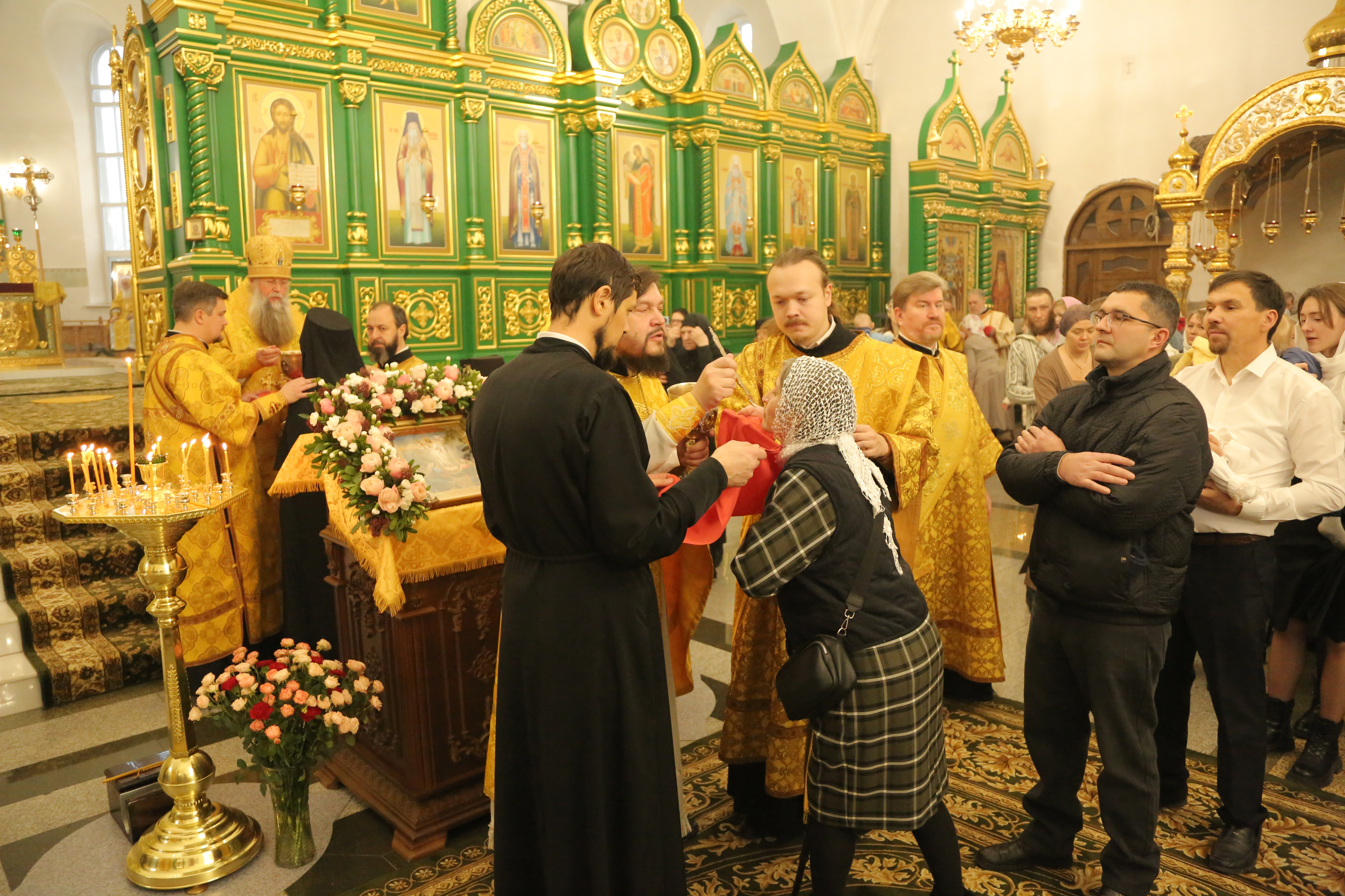 За Литургией молились: духовное чадо и ученик преподобного старца Севастиана Карагандинского – духовник Богородице-Рождественского женского монастыря архимандрит Петр (Горошко); настоятельница Богородице-Рождественского монастыря Караганды игумения Олимпиада (Салопеко) с насельницами обители; сотрудники Карагандинского епархиального управления; учащиеся воскресных школ.