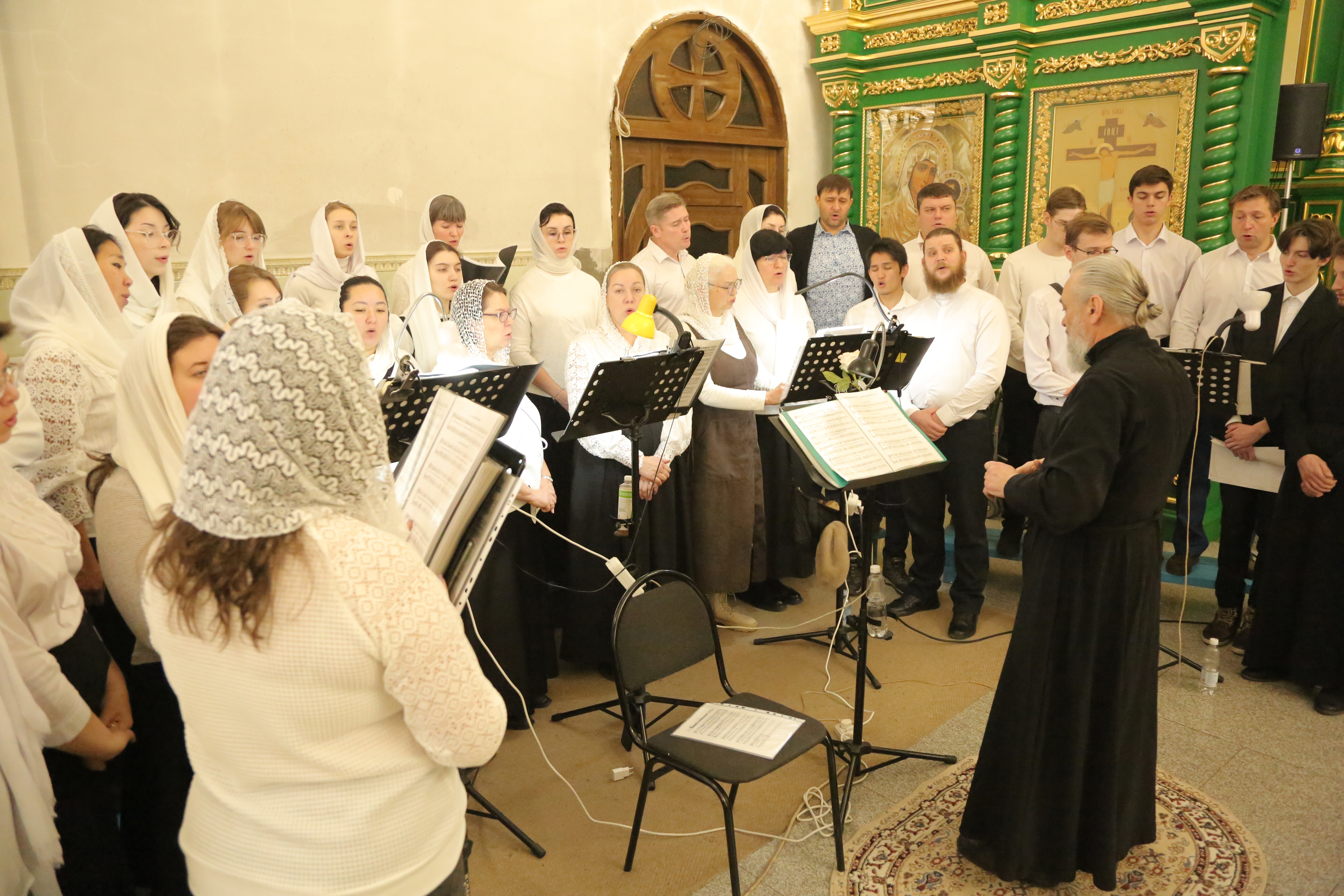 Богослужебные песнопения исполнил архиерейский хор Карагандинской епархии под управлением В. Тесленко.