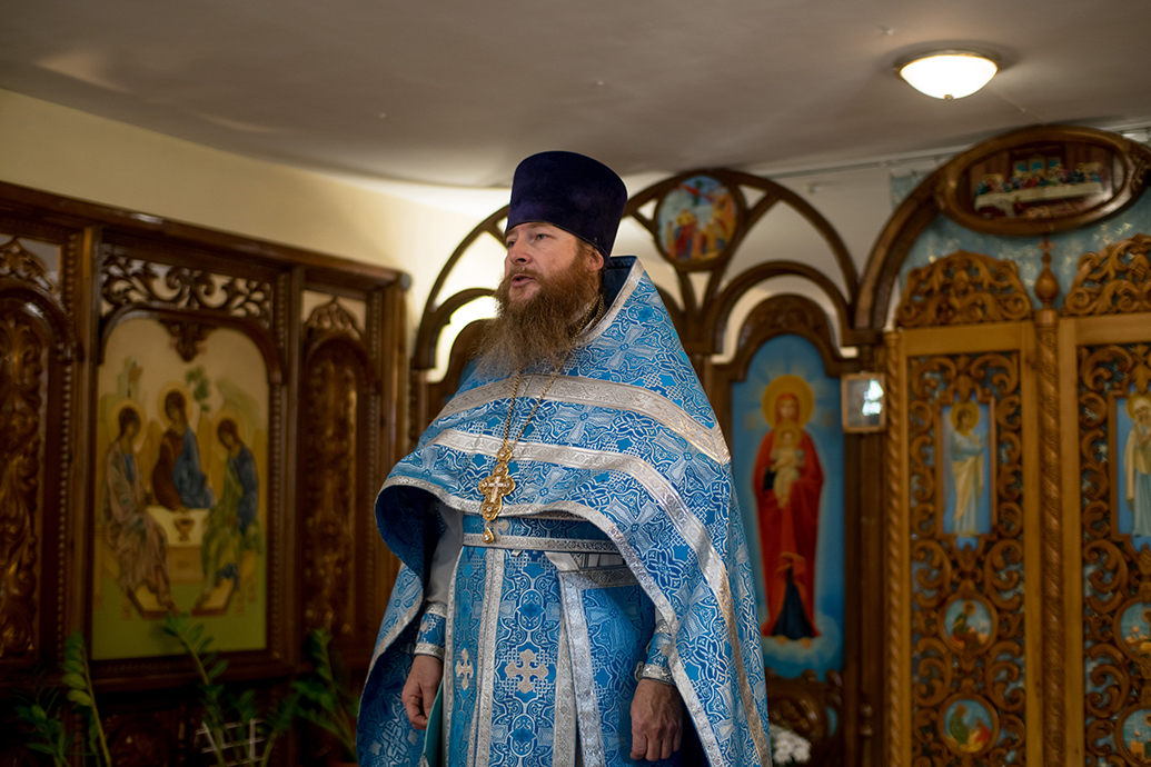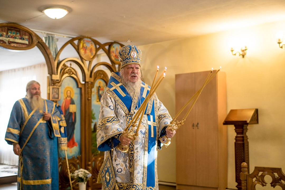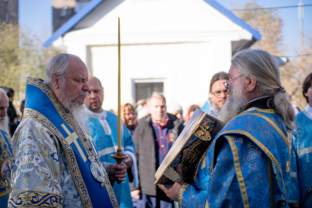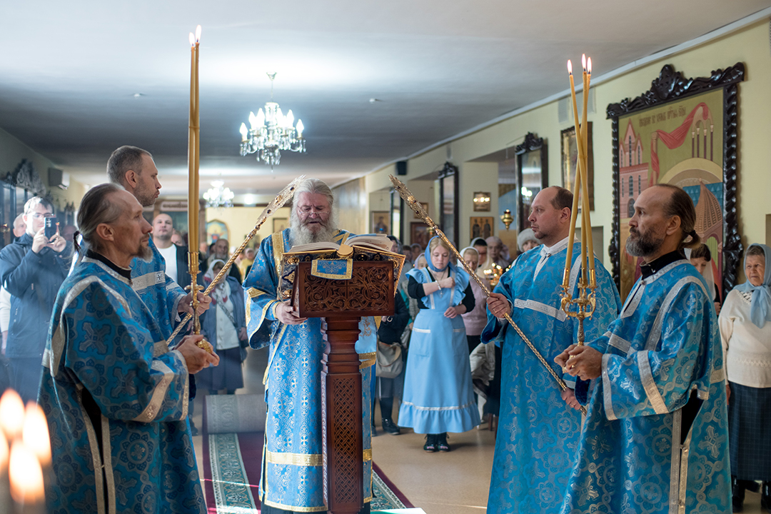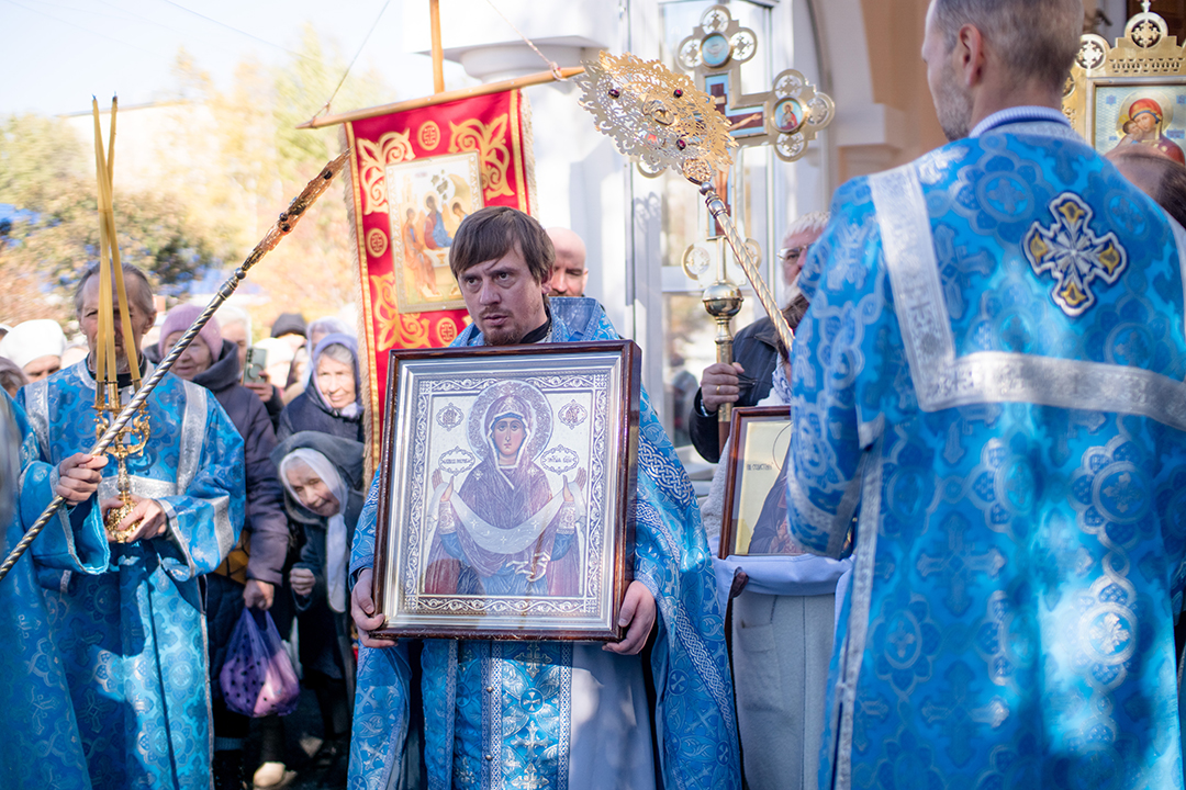 После заамвонной молитвы состоялось славление перед иконой Покрова Пресвятой Богородицы. Далее был совершен крестный ход, на котором архиепископ Севастиан окропил всех верующих святой водой. В завершение богослужения правящий архиерей обратился к присутствующим со словом проповеди, поздравил настоятеля и прихожан с престольным праздником и преподал Божие благословение.