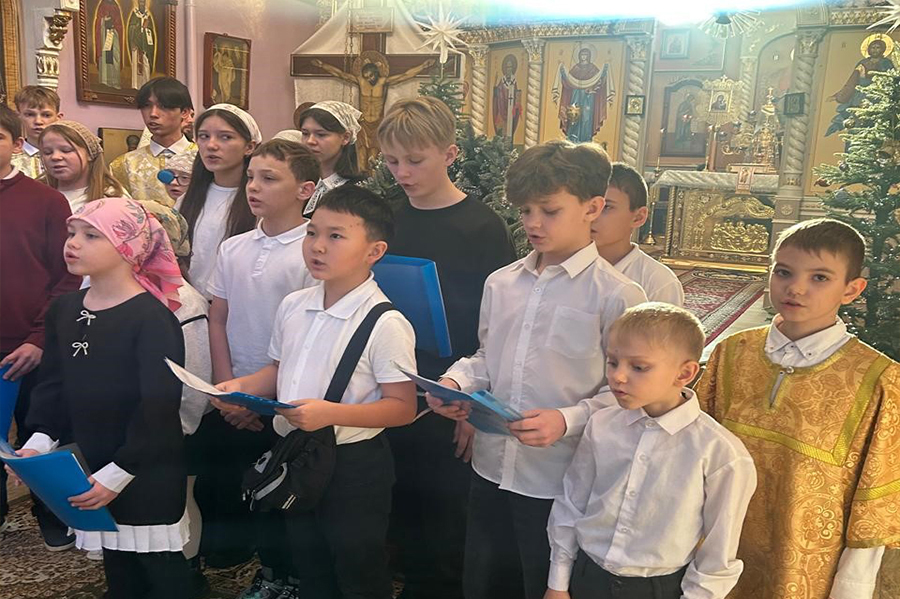 После запричастного стиха было оглашено Рождественское послание архиепископа Карагандинского и Шахтинского Севастиана духовенству и боголюбивой пастве Карагандинской епархии. В завершение богослужения воспитанники воскресной школы поздравили владыку Севастиана со светлым праздником Рождества Христова, а правящий архиерей подарил каждому ребенку сладкий подарочек.