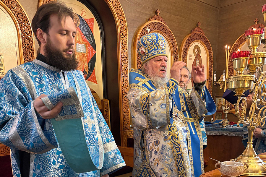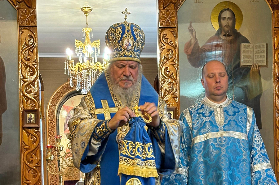 После заамвонной молитвы состоялось славление Божией Матери перед Ее честной иконой. Далее был совершен крестный ход, на котором архиепископ Севастиан окропил всех святой водой. В завершение богослужения правящий архиерей произнес проповедь, поздравил настоятеля и прихожан с престольным праздником и преподал всем Божие благословение.
