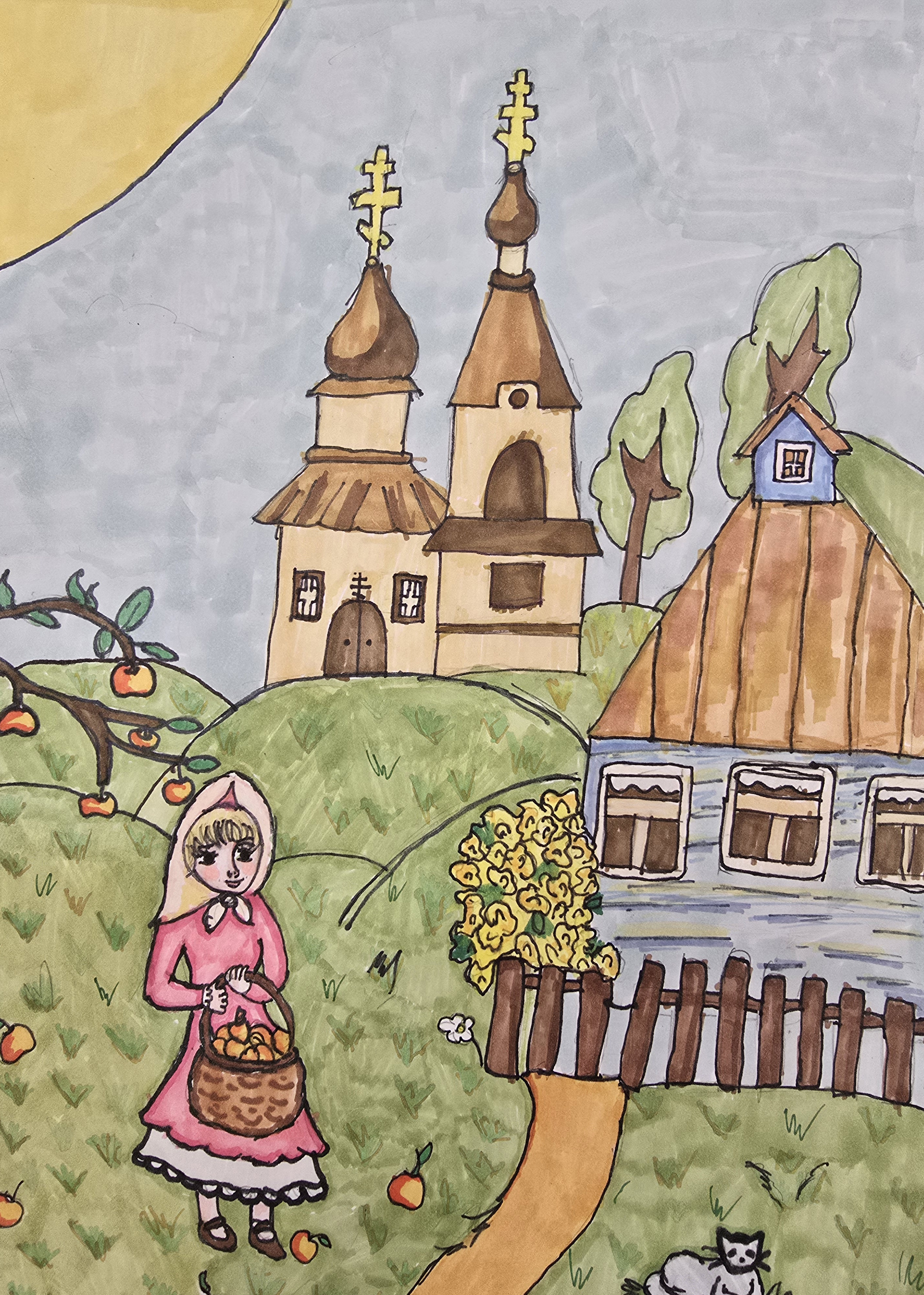 2 место - Жданова Кира, 12 лет. «Яблочный Спас». Храм Преподобномучениц Елисаветы и Варвары посёлок Новодолинский.