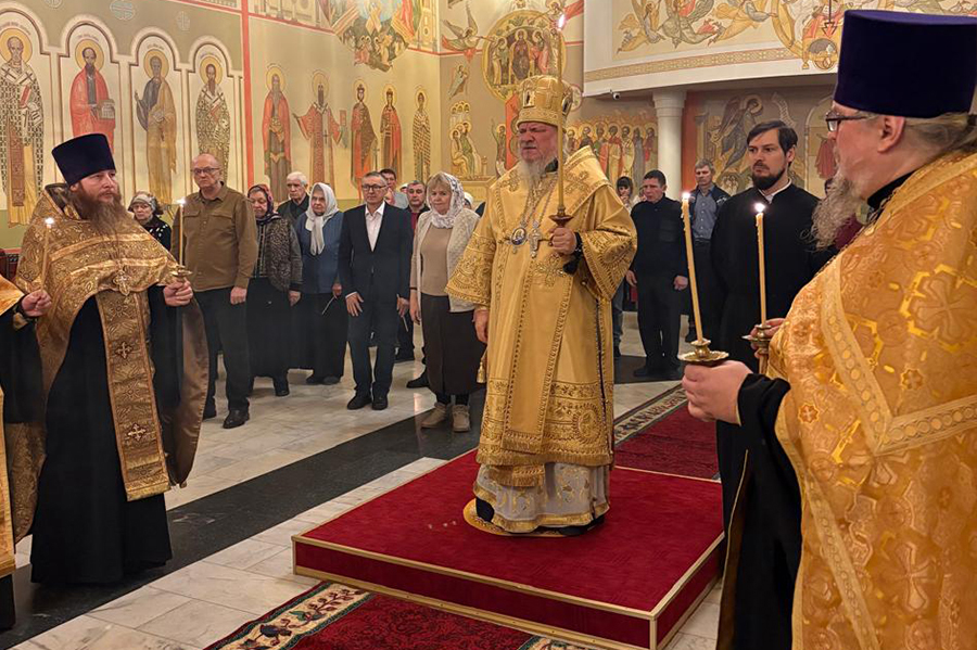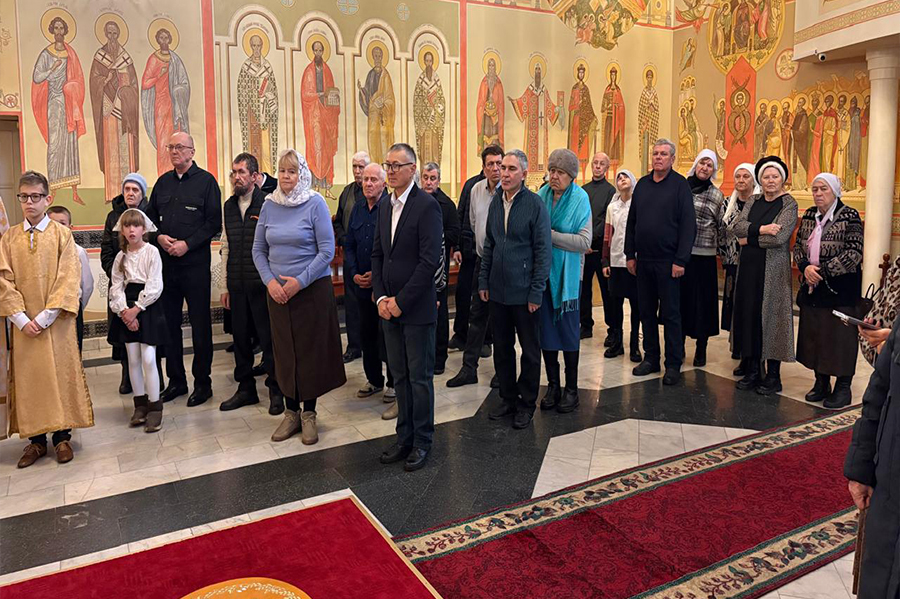 В воскресенье, 14 декабря, правящий архиерей совершил Божественную литургию в храме Святителя Николая города Сатпаев в сослужении вышеназванных священнослужителей.