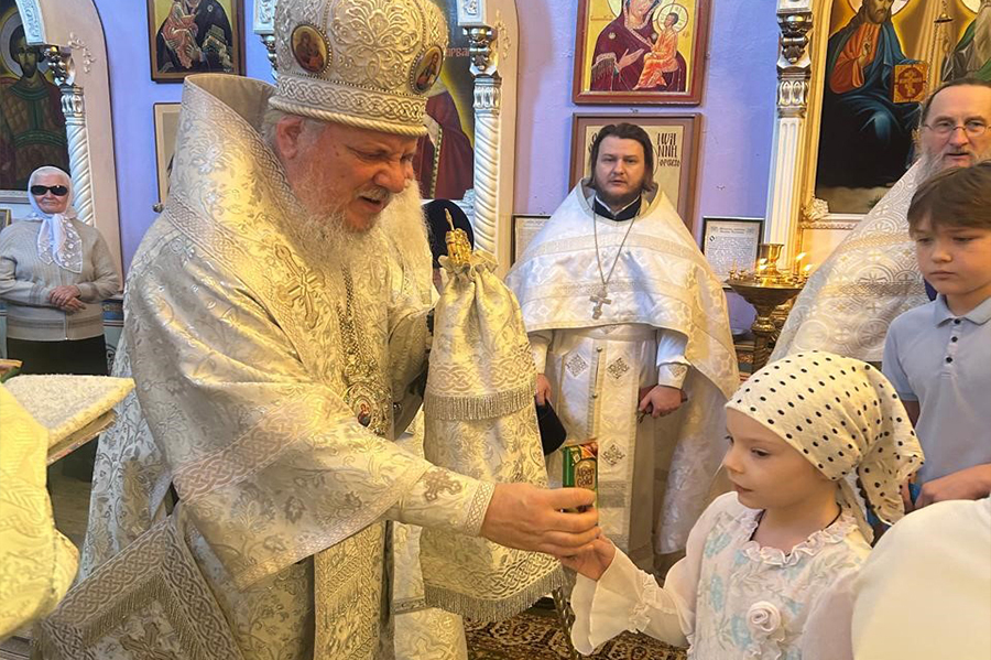 После запричастного стиха было оглашено Рождественское послание архиепископа Карагандинского и Шахтинского Севастиана духовенству и боголюбивой пастве Карагандинской епархии. В завершение богослужения воспитанники воскресной школы поздравили владыку Севастиана со светлым праздником Рождества Христова, а правящий архиерей подарил каждому ребенку сладкий подарочек.