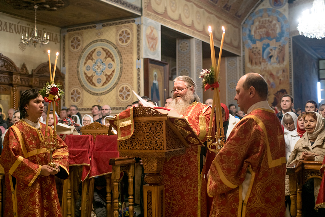 Вечером, в день празднования Воскресения Христова, архиепископ Севастиан совершил праздничную Великую вечерню.