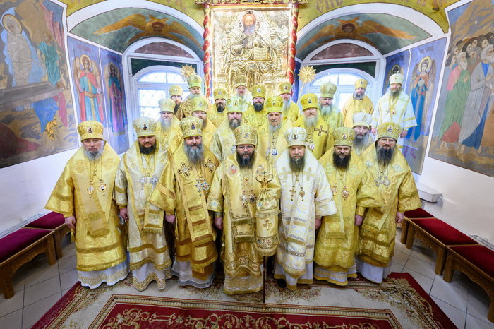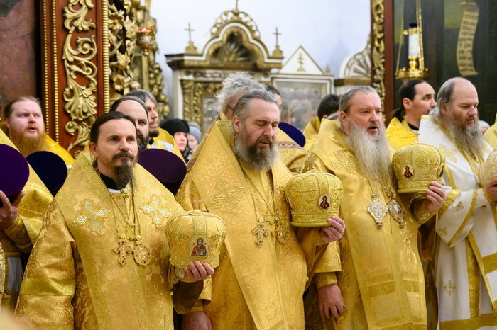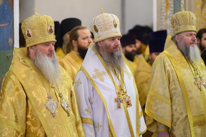 Его Высокопреосвященству сослужили: митрополит Хабаровский и Приамурский Артемий, митрополит Сыктывкарский и Коми-Зырянский Филипп, митрополит Самарский и Новокуйбышевский Феодосий, митрополит Астраханский и Камызякский Никон, митрополит Владивостокский и Приморский Павел, митрополит Екатеринодарский и Кубанский Василий, архиепископ Карагандинский и Шахтинский Севастиан, архиепископ Салехардский и Ново-Уренгойский Николай, архиепископ Анадырский и Чукотский Ипатий, епископ Рыбинский и Романово-Борисоглебский Вениамин, епископ Арсеньевский и Дальнегорский Гурий, епископ Биробиджанский и Кульдурский Лука, епископ Кинешемский и Палехский Иларион, епископ Югорский и Няганский Михаил, епископ Шуйский и Тейковский Иоанн, епископ Николаевский и Богородский Иннокентий, епископ Чимкентский и Туркестанский Хрисанф, викарий Салехардской епархии епископ Ноябрьский Феодосий, епископ Кудымкарский и Верещагинский Петр, епископ Нерчинский и Краснокаменский Макарий, епископ Великолукский и Невельский Варнава.